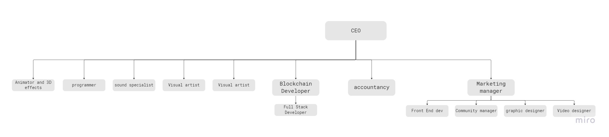 Team for game development, tokenization, administration and marketing.